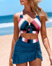 SPECIFIKATIONER Stil: Semester, Sexig Material: 85% Polyester, 15% Spandex Tillfälle: Semester Mönstertyp: Färgblock Ärmlängd: Ärmlös Linnetyp: Bikini BH typ: Trådlös BH Nedre typ: Kjolar Passform typ: Vanlig Säsong: Sommar Detaljer: Korsband Paketet innehåller: 1 x Bikini STORLEKSTABELL(cm) Storlek Byst Midjeomkrets Höft Under byst S...
