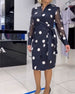 SPECIFIKATIONER Stil: Elegant Material: Bomullsblandningar Klänningstyp: A-linje Klänning längd: Knälängd Urringning: V-hals Mönstertyp: Polka prickig Typ av ärm: Vanlig ärm Ärmlängd: Långärmad Detaljer: Lappverk, Snöra upp, Genomskinlig Passform typ: Vanlig Säsong: Vår, Sommar, Höst Tillfälle: Dagligen Paketet innehåller: 1 x Klänning STO...