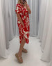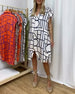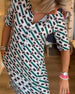 Geometriskt mönstrad klänning med V-ringning