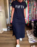 Fritidsklänning med slits i kontrasttryck