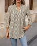 SPECIFIKATIONER Topptyp: Blusar Stil: Elegant, Kontor Material: Bomullsblandningar Tillfälle: Dagligen Urringning: V-hals_V Mönstertyp: Geometriskt tryck Typ av ärm: Vanlig ärm Ärmlängd: Långärmad Passform typ: Vanlig Säsong: Vår, Höst, Vinter Paketet innehåller: 1 x Blus STORLEKSTABELL(cm) Storlek Byst Längd S 95 68 M 100 69....