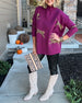 Glänsande topp med rund hals och dolmanärm