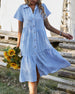 SPECIFIKATIONER Stil: Enkel, Semester Material: Bomullsblandningar Klänningstyp: Skjorta Klänning längd: Midi Urringning: Slag Mönstertyp: Blommig Typ av ärm: Vanlig ärm Ärmlängd: Halvärm Detaljer: Knappar Passform typ: Vanlig Säsong: Vår, Sommar, Höst Tillfälle: Vardag, Semester Paketet innehåller: 1 x Klänning STORLEKSTABELL(cm) ...