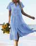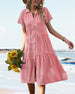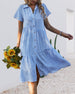 SPECIFIKATIONER Stil: Enkel Material: Polyester Klänningstyp: Skjorta Klänning längd: Midi Urringning: Slag Mönstertyp: Pläd Typ av ärm: Vanlig ärm Ärmlängd: Kortärmad Detaljer: Knappar Passform typ: Vanlig Säsong: Vår, Sommar, Höst Tillfälle: Dagligen Paketet innehåller: 1 x Klänning STORLEKSTABELL(cm) Storlek Byst Längd Armlän...