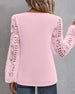 SPECIFIKATIONER Topptyp: Blusar Stil: Enkel, Elegant Material: 94% polyester, 6% spandex Tillfälle: Dagligen Mönstertyp: Enfärgade Typ av ärm: Vanlig ärm Ärmlängd: Långärmad Passform typ: Vanlig Säsong: Vår, Höst, Vinter Detaljer: Urgröpande, Spets Paketet innehåller: 1 x Blus STORLEKSTABELL(cm) Storlek Byst Längd Armlängd Axlar S 90...