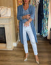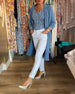 Avslappnad blommig skjorta med tre fjärdedels ärm