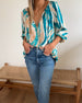 Avslappnad blus med blommigt tryck med ficka och lång ärm