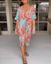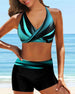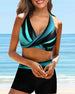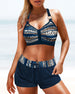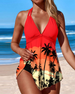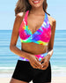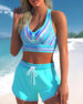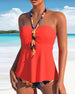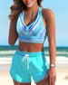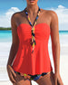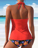 Halterneck veckad tankini baddräkt med blommönster