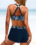 Halter tankinis med randigt tryck