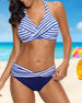 Halter-bikini i randigt tryck