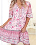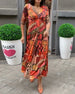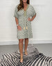 Halvärmad klänning med V-ringning och tryck