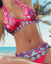 Halterbikini med blommigt och geometriskt tryck