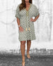 SPECIFIKATIONER Stil: Enkel Material: Bomullsblandningar Klänningstyp: Skiftklänning Klänning längd: Midi Urringning: V-hals_V Mönstertyp: Tryckt Typ av ärm: Vanlig ärm Ärmlängd: Halvärm Passform typ: Vanlig Säsong: Vår, Sommar, Höst Tillfälle: Dagligen Paketet innehåller: 1 x Klänning STORLEKSTABELL(cm) Storlek Byst Längd S 95 1...