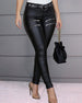 Hög midja PU-dragkedjebyxor