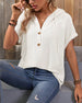 SPECIFIKATIONER Topptyp: Blusar Stil: Enkel Material: 100% Polyester Tillfälle: Dagligen Urringning: V-hals_V Mönstertyp: Enfärgade Typ av ärm: Vanlig ärm Ärmlängd: Kortärmad Passform typ: Vanlig Säsong: Vår, Sommar, Höst Detaljer: Knappar, Dragsko Paketet innehåller: 1 x Blus STORLEKSTABELL(cm) Storlek Byst Längd S 95 68 M 1...