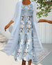 Klänning med 3/4-ärm och blommönster