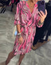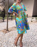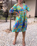 SPECIFIKATIONER Stil: Enkel Material: 5% Spandex, 95% Polyester Klänningstyp: A-linje Klänning längd: Knälängd Urringning: V-hals Mönstertyp: Tryckt Typ av ärm: Flare ärm Ärmlängd: 3/4 ärm Detaljer: Blandade Passform typ: Vanlig Säsong: Sommar Tillfälle: Vardag, Semester Paketet innehåller: 1 x Klänning STORLEKSTABELL(cm) Storlek...