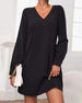 SPECIFIKATIONER Stil: Elegant Material: Bomullsblandningar Klänningstyp: Skiftklänning Klänning längd: Över knä Urringning: V-hals_V Mönstertyp: Enfärgade Typ av ärm: Vanlig ärm Ärmlängd: Långärmad Passform typ: Vanlig Säsong: Höst, Vinter Tillfälle: Dagligen, Semester Paketet innehåller: 1 x Klänning STORLEKSTABELL(cm) Storlek Byst Län...