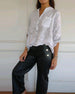 Komfortabel enfärgad lapelblus med kort ärm och ficka