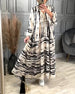 SPECIFIKATIONER Stil: Enkel Material: Bomullsblandningar Klänningstyp: A-linje Klänning längd: Maxi Urringning: V-hals_V Mönstertyp: Tryckt Typ av ärm: Flare ärm Ärmlängd: Långärmad Detaljer: Lappverk Passform typ: Lös Säsong: Vår,Sommar,Höst Tillfälle: Dagligen Paketet innehåller: 1 x Klänning STORLEKSTABELL(cm) Storlek Byst Längd S 97 13...