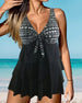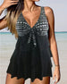 SPECIFIKATIONER Stil: Semester, Sexig Material: Chinlon, Polyester Tillfälle: Semester Urringning: V-hals_V Mönstertyp: Geometriskt tryck, Tryckt Ärmlängd: Ärmlös Linnetyp: Tankini BH typ: Trådlös BH Nedre typ: Naturlig Passform typ: Vanlig Säsong: Sommar Detaljer: Rufsad, Bågknut Paketet innehåller: 1 x Tankini STORLEKSTABELL(cm) ...