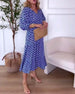 SPECIFIKATIONER Stil: Enkel Material: Bomullsblandningar Klänningstyp: A-linje Klänning längd: Midi Urringning: V-hals_V Mönstertyp: Tryckt Typ av ärm: Vanlig ärm Ärmlängd: 3/4 ärm Passform typ: Vanlig Säsong: Vår, Sommar Tillfälle: Dagligen Paketet innehåller: 1 x Klänning STORLEKSTABELL(cm) Storlek Byst Längd S 95 120 M 100 121.5 L 1...