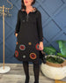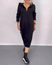 Avslappnad klänning med luva i cirkeltryck med dragkedja