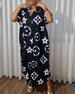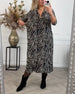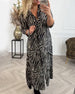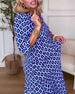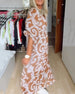 Avslappnad klänning med V-ringad trekvartsärm med tryck