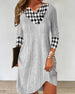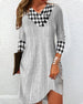 SPECIFIKATIONER Stil: Enkel Material: Bomullsblandningar Klänningstyp: Skiftklänning Klänning längd: Knälängd Urringning: V-hals_V Mönstertyp: Pläd, Färgblock Typ av ärm: Vanlig ärm Ärmlängd: Långärmad Passform typ: Vanlig Säsong: Vår, Höst, Vinter Tillfälle: Dagligen Paketet innehåller: 1 x Klänning STORLEKSTABELL(cm) Storlek Byst Läng...