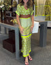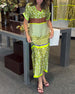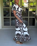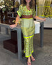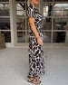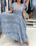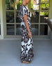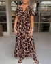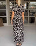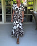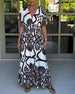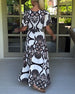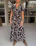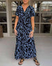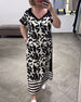 Kortärmad långklänning med V-ringning och kontrasttryck
