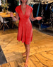 Kortärmad prickig klänning med V-ringad