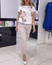 Kortärmad t-shirt i issilke med tryck