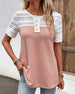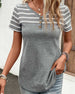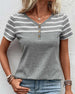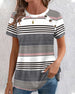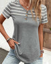 SPECIFIKATIONER Topptyp: T-shirt Stil: Enkel Material: Bomullsblandningar Tillfälle: Dagligen Urringning: V-hals_V Mönstertyp: Randig Typ av ärm: Vanlig ärm Ärmlängd: Kortärmad Passform typ: Vanlig Säsong: Vår, Sommar, Höst Detaljer: Knappar Paketet innehåller: 1 x T-shirt STORLEKSTABELL(cm) Storlek Byst Längd S 95 68 M 100 69...