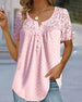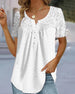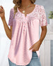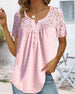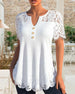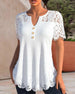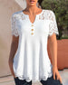 SPECIFIKATIONER Topptyp: Blusar Stil: Elegant Material: Bomullsblandningar, Spets Tillfälle: Dagligen Urringning: V-hals_V Mönstertyp: Enfärgade Typ av ärm: Vanlig ärm Ärmlängd: Kortärmad Passform typ: Vanlig Säsong: Vår, Sommar, Höst Detaljer: Lappverk, Knappar, Spets Paketet innehåller: 1 x Blus STORLEKSTABELL(cm) Storlek Byst Lä...