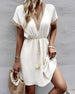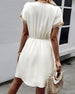 SPECIFIKATIONER Stil: Enkel Material: Bomullsblandningar Klänningstyp: A-linje Klänning längd: Knälängd Urringning: V-hals_V Mönstertyp: Enfärgade Typ av ärm: Vanlig ärm Ärmlängd: Kortärmad Detaljer: Snöra upp Passform typ: Vanlig Säsong: Vår, Sommar, Höst Tillfälle: Dagligen Paketet innehåller: 1 x Klänning (Med bälte) STORLEKSTABELL(cm) ...