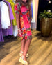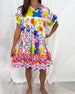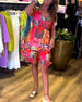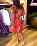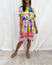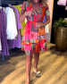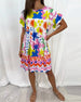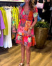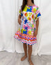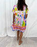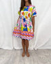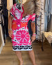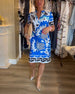 Kortärmad klänning med V-ringning och tryck