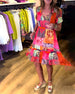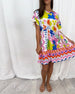 Kortärmad off-the-shoulder klänning med tryck