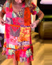 Kortärmad patchworkklänning med rund hals