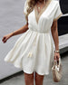Kortärmad klänning med V-ringning