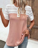 SPECIFIKATIONER Topptyp: Toppar Stil: Elegant Material: Bomullsblandningar, Spets Tillfälle: Dagligen Urringning: V-hals_V Mönstertyp: Enfärgade Typ av ärm: Vanlig ärm Ärmlängd: Kortärmad Passform typ: Vanlig Säsong: Vår, Sommar, Höst Detaljer: Lappverk Paketet innehåller: 1 x Topp STORLEKSTABELL(cm) Storlek Byst Längd S ...