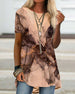 Kortärmad v-ringad klänning med tryck