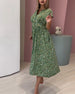 SPECIFIKATIONER Stil: Enkel Material: Bomullsblandningar Klänningstyp: A-linje Klänning längd: Midi Urringning: V-hals_V Mönstertyp: Tryckt Typ av ärm: Vanlig ärm Ärmlängd: Kortärmad Detaljer: Ficka, Knappar Passform typ: Lös Säsong: Vår, Sommar, Höst Tillfälle: Dagligen Paketet innehåller: 1 x Klänning STORLEKSTABELL(cm) Storlek B...