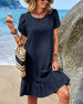 SPECIFIKATIONER Stil: Enkel Material: Bomullsblandningar Klänningstyp: Skiftklänning Klänning längd: Knälängd Urringning: Rund nacke Mönstertyp: Enfärgade Typ av ärm: Slits ärmar Ärmlängd: Kortärmad Detaljer: Lappverk, Rufsad Passform typ: Vanlig Säsong: Vår, Sommar, Höst Tillfälle: Dagligen Paketet innehåller: 1 x Klänning STORLEKSTABELL(...
