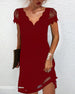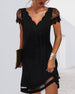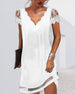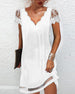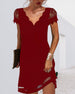 SPECIFIKATIONER Stil: Elegant Material: Bomullsblandningar, Spets Klänningstyp: Skiftklänning Klänning längd: Över knä Urringning: V-hals Mönstertyp: Enfärgade Typ av ärm: Vanlig ärm Ärmlängd: Kortärmad Detaljer: Lappverk Passform typ: Vanlig Säsong: Vår, Sommar, Höst Tillfälle: Dagligen Paketet innehåller: 1 x Klänning STORLEKSTABELL(cm) ...