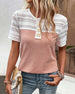 SPECIFIKATIONER Topptyp: Blusar Stil: Elegant Material: Bomullsblandningar Tillfälle: Dagligen Urringning: Rund nacke Mönstertyp: Färgblock Typ av ärm: Vanlig ärm Ärmlängd: Kortärmad Passform typ: Vanlig Säsong: Vår, Sommar, Höst Detaljer: Lappverk, Knappar, Spets Paketet innehåller: 1 x Blus STORLEKSTABELL(cm) Storlek Byst Längd ...