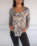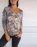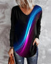 Långärmad topp med Ombre-tryck och v-ringad hals