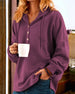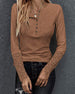 SPECIFIKATIONER Topptyp: Toppar Stil: Enkel Material: Bomullsblandningar, Spandex Tillfälle: Dagligen Urringning: Rund nacke Mönstertyp: Enfärgade Typ av ärm: Vanlig ärm Ärmlängd: Långärmad Passform typ: Vanlig Säsong: Vår, Höst, Vinter Detaljer: Knappar, Slits Förpackningen innehåller: 1 x Topp STORLEKSTABELL(cm) Storlek Byst ...