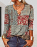 Långärmad topp med V-ringad vintage med blommigt tryck