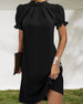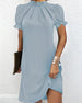 SPECIFIKATIONER Stil: Enkel Material: 95% polyester; 5% spandex Klänningstyp: A-linje Klänning längd: Knälängd Urringning: Ståkrage Mönstertyp: Enfärgade Typ av ärm: Puffärm Ärmlängd: Kortärmad Detaljer: Blandade Passform typ: Vanlig Säsong: Vår, Sommar Tillfälle: Dagligen Paketet innehåller: 1 x Klänning STORLEKSTABELL(cm) Storlek Byst ...