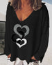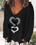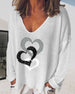 SPECIFIKATIONER Topptyp: Toppar Stil: Enkel Material: Bomullsblandningar Tillfälle: Dagligen Urringning: V-hals_V Mönstertyp: Tryckt, Hjärta Typ av ärm: Tappad axel Ärmlängd: Långärmad Passform typ: Lös Säsong: Vår, Sommar, Höst, Vinter Paketet innehåller: 1 x Topp STORLEKSTABELL(cm) Storlek Byst Längd Armlängd S 98 60 42 M 1...